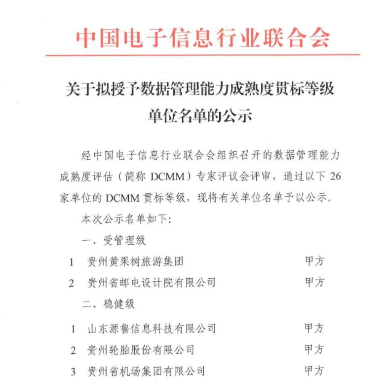 热烈祝贺山东源鲁信息科技有限公司荣获DCMM三级资质证书